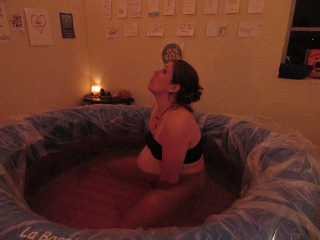 The first of our birth team arrived and helped Rob start to fill the birth tub. My contractions were already incredibly intense, and I couldn't wait to get in the water. Unfortunately, we have very low water pressure so I had to wait what felt like forever.